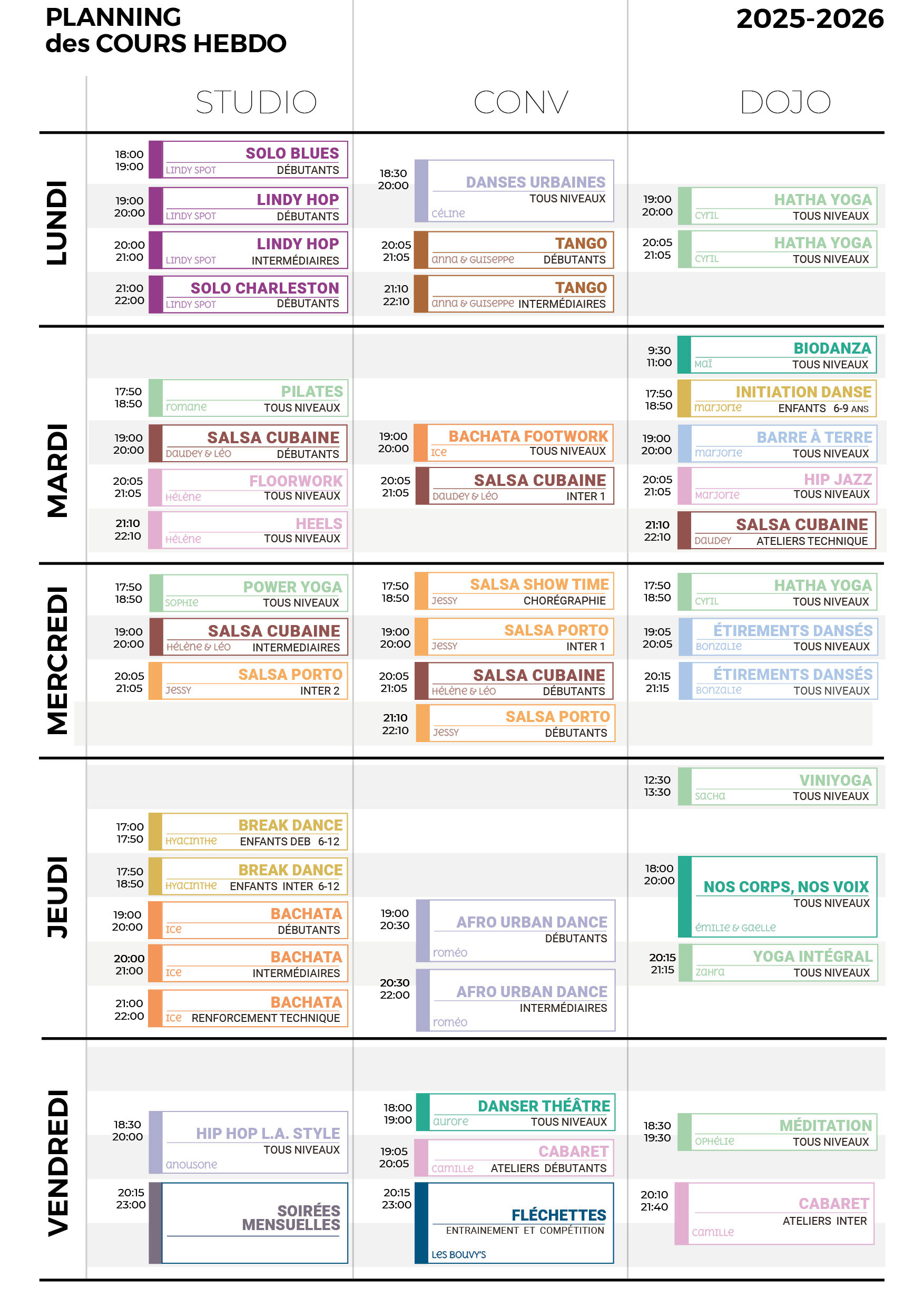 Planning des cours