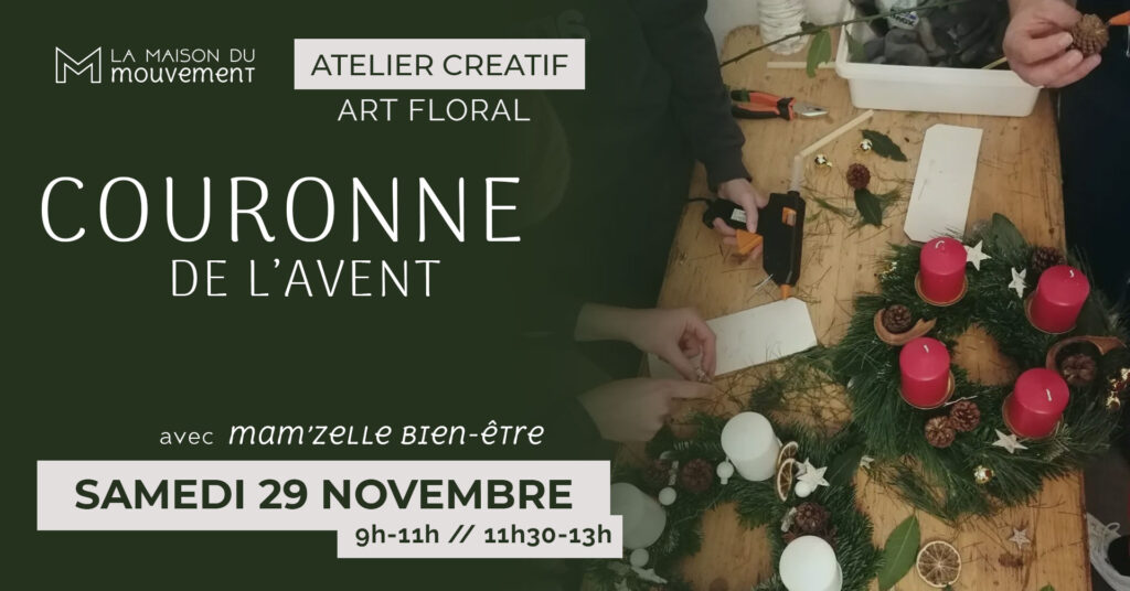 Fleuriste pendant 18 ans, Amandine vous partage ses connaissances lors d’un atelier pour créer votre COURONNE DE L’AVENT en solo ou en duo avec votre enfant.